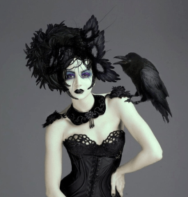 An idea comes not only from the mind, also comes from a topic, a painting, a film, a filmmaker, an artist, etc.. Creating an item comes from many sites, places and themes. This does not happen because the designer is a scholar or an inventor, no. This is flowing over his or her creativity and also for it’s inspiration which is very passionate about and love.Each element depends on the inspiration that the designer has in it’s mind which is reflected in the gown. For example, seeing this picture gives me the feeling (besides having a Gothic aesthetic, which is obvious), we see that the crow stylist is an important part of it and not only photographic but the suit itself. The lines seem to handle the corset which seams like were the feathers of the raven and the headdress turn to give a feeling of flying, mystery and majesty.
