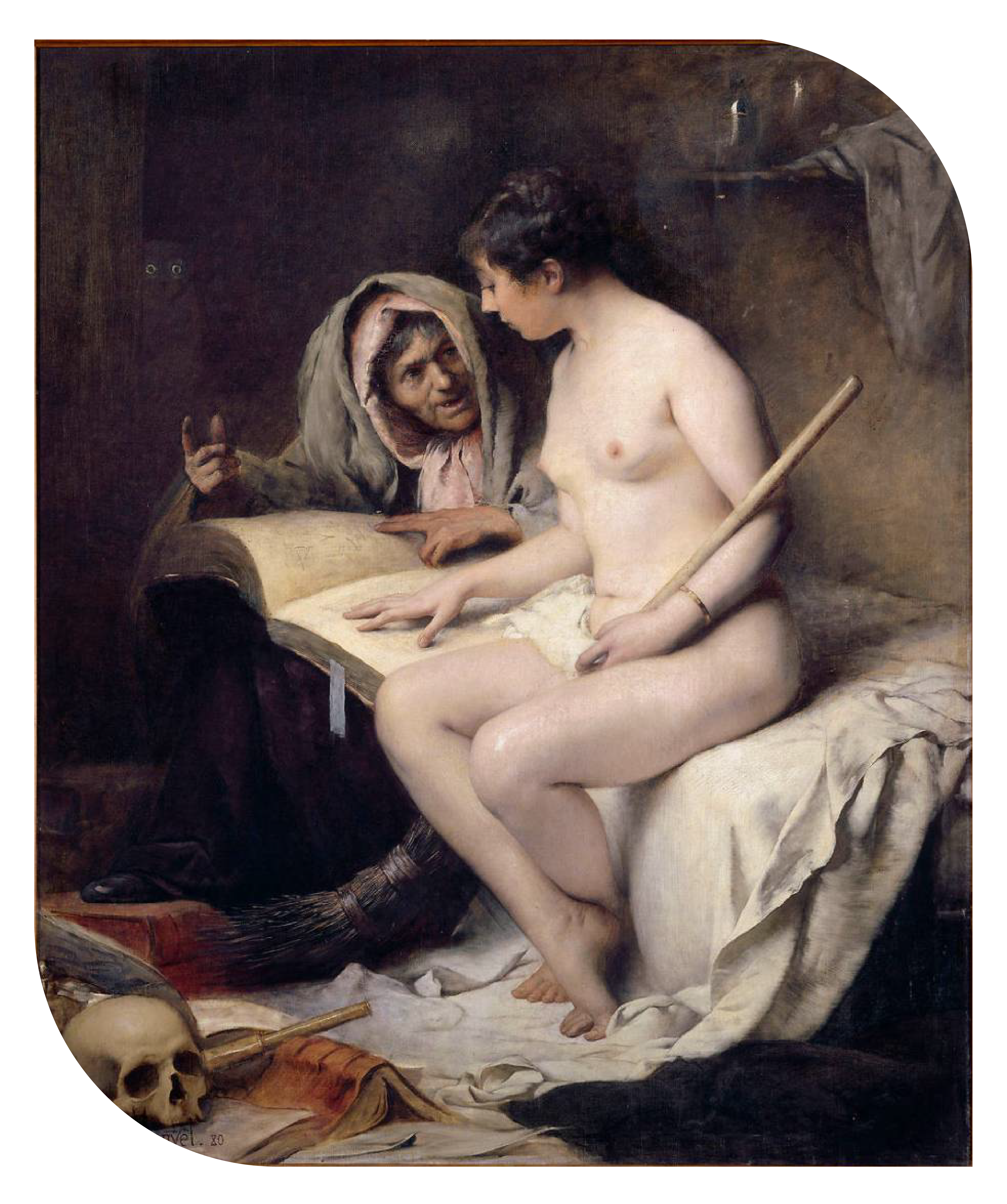 La primera lección del aquelarre. Louis Maurice Boutet de Monvel. 1880. Nemours, Castillo.