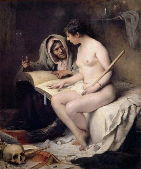 En el marco de lo distinto, lo diverso, lo ciborg de lo femenino (Hawaray, 1984) es la bruja como personaje mítico que responde a una materialización producto del colonialismo, pero que, pese al sentido peyorativo colonial de la denominación, se convierte en un posible híbrido de máquina y organismo que se constituye como una criatura de realidad social, pero así mismo, de la ficción. Se podría decir que la ficción creada en torno a la bruja se puede evidenciar en la representación pictórica del artista Francisco de Goya, quien, al sufrir la pérdida auditiva, consumió toda su frustración y dolor a través de las imágenes oscuras de los “aquelarres” nocturnos de aquellos relatos inquisidores que iniciaron que el personaje de la bruja se tornará grotesco y tenebroso. (Recordemos que la palabra aquelarre o aquelarres se explica como una reunión de brujas y demonios en la que se llegaba al punto máximo de satanismo mediante la parodia blasfema de ritos cristianos, orgías interminables y planes para subvertir el orden establecido, que debía entenderse como el nudo indesatable de la Iglesia con el Estado. También surgió el término Sabbat, que muchos equiparaban con aquelarre, mientras que otros pensaban que era una palabra hebrea que servía para designar el séptimo día y que fue atribuida a las actividades de las brujas, por hostilidad hacia los judíos.)